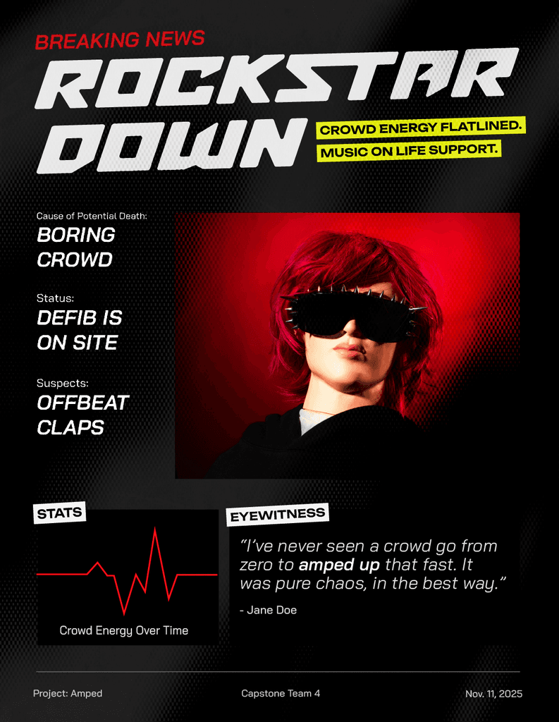 Amped is a rhythm game focused on bringing a rockstar back to life through the energy of music. A group of New Media Design and Interactive students came together to create an immersive experience to bring to Alt Ctrl GDC.