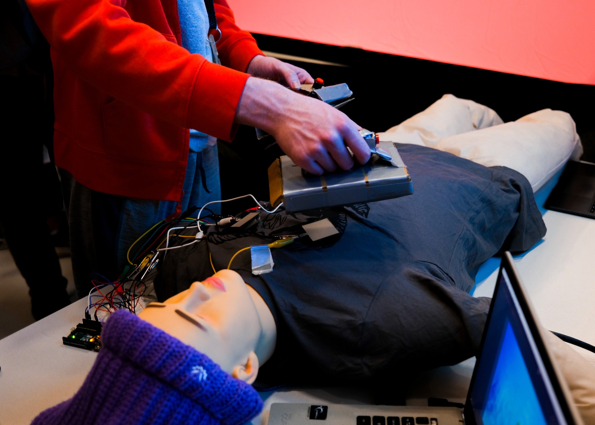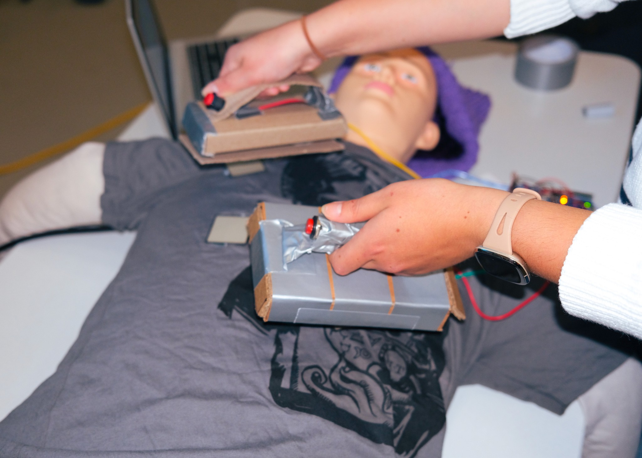 Pressure Sensors: Detects pressure from defibrillator through Arduino for in game notes.